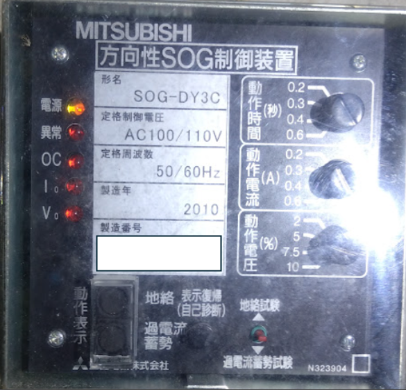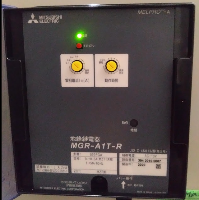 零相電圧20[V]一次換算400[V]~20[V]×√3/6600(190/√3)3相零相電流2mA(一次換算267[mA])~2[mA]×200/1.5)、動作時間は仕上がりで0.9秒等としている。