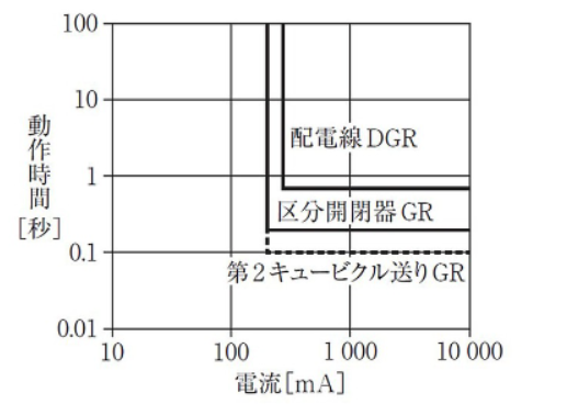 また、動作時間は配電用変電所の継電器と協調をとり0.2秒とするのが一般的である。