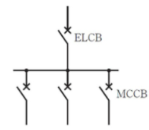 低圧の分岐盤では上記図のように主回路にELCBを使用し