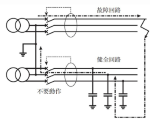 下記図のように地絡故障が起きた場合、地絡電流が過負荷電流やB種接地を通して隣接変圧器から回り込み