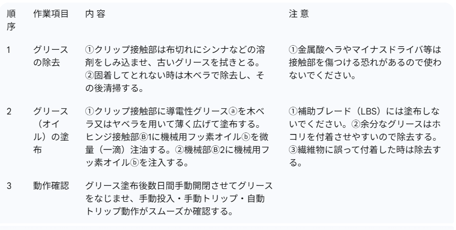 作業にあたっては、表3のグリース(オイル)と作業用具のヘラを
