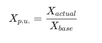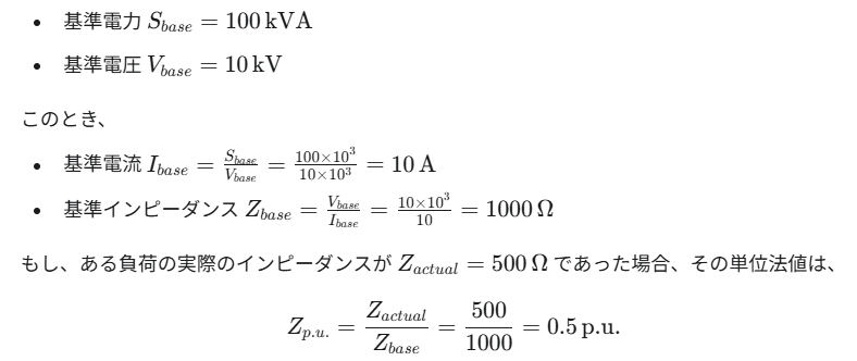 そして、任意の電気量 X の単位法値 Xp.u. は、実際の値 Xactual を基準値 Xbase で割ることで求められる。