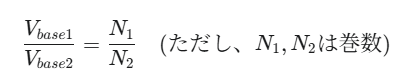 例)変圧器の1次側と2次側でそれぞれ基準電圧 Vbase1 と Vbase2 を設定するとする。