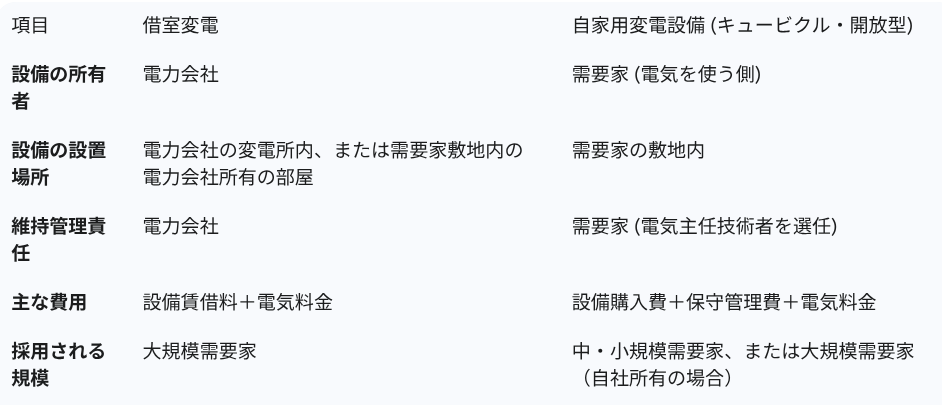 大規模な工場や商業施設などで採用されることが多く、電力会社が変電設備の設置と管理を行う。