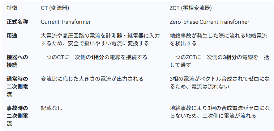 ZCTもCTも原理は同じで、どちらも電流を変換する機器。