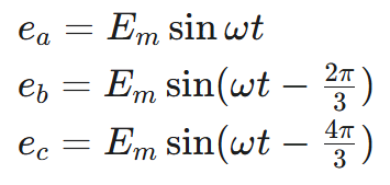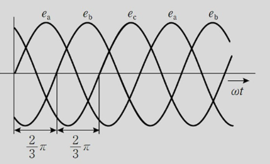 三相交流は、位相をずらした単相交流を3つ組み合わせたものなので