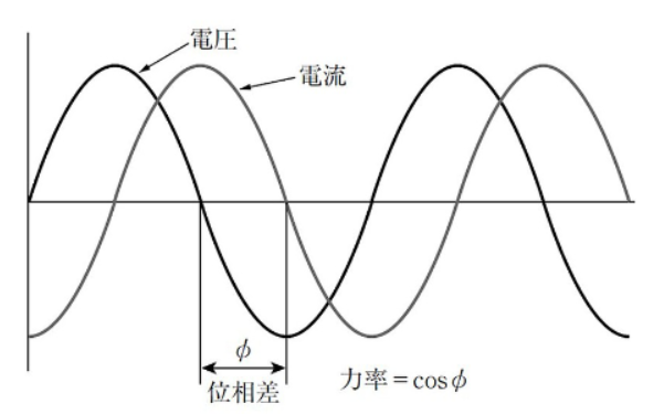 電圧と電流の位相差φにより求められる。