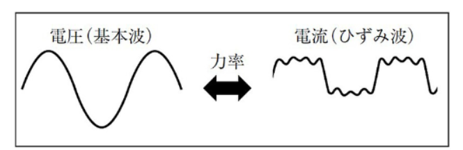 ひずみ波の力率低下は高調波が原因なので、高調波を抑制(ひずみ波形の改善)することが力率改善になる。