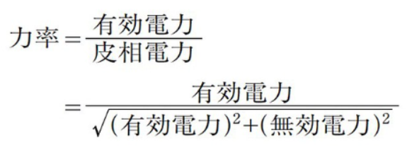 力率は、有効電力と無効電力を使用すると次式で表せられる。