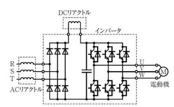 インバータの直流回路にDCリアクトルを設置して