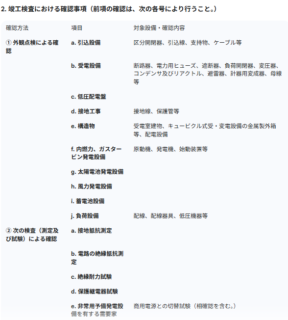 2023年度版 自家用電気工作物 保安管理規定220-4竣工検査 より引用