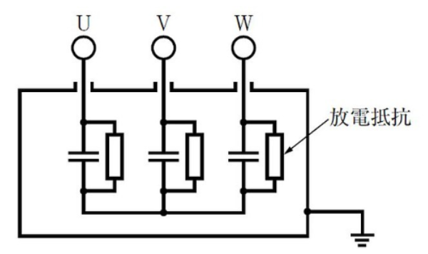 コンデンサには一般に、下記図のように放電抵抗が内蔵されており