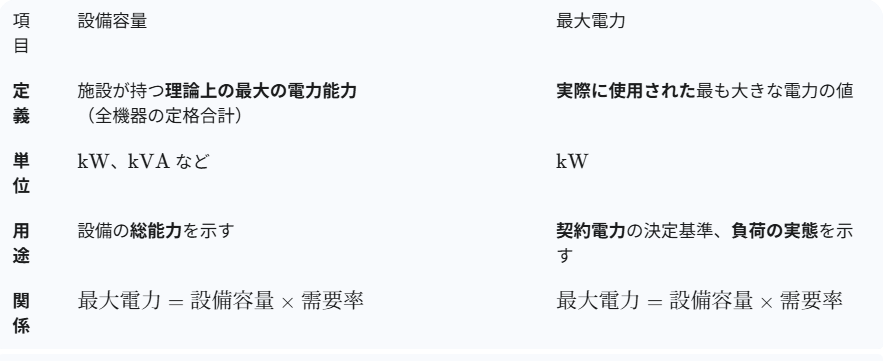したがって、最大電力 <設備容量の関係が常に成り立つ。