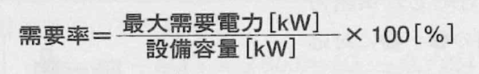 最大電力は、設備容量にこの需要率をかけた現実的な最大使用電力の目安として見積もられる。