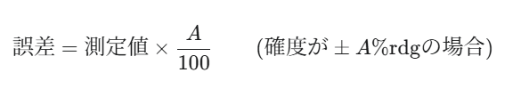 rdg. 誤差の単位は%で表され、測定器に表示された測定値に rdg. 誤差 を掛け算した数字が誤差になる。