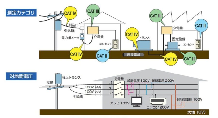 CATは、測定できる場所と入力できる対地間電圧の2つを示している。