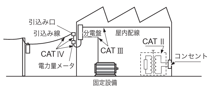キュービクルや変電所を測定するならCAT IVが必要になる。