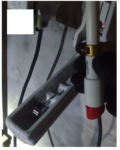 ② ヒューズ筒の取外しは、上図のように操作棒頭部の着脱具溝にヒューズ筒尖先を挿入し