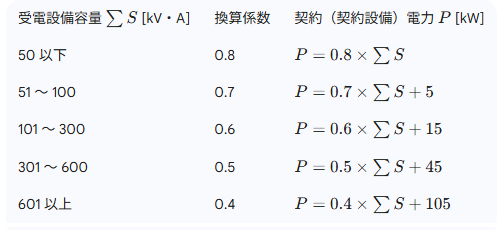 電力会社が定める計算式(デマンド率や力率などを考慮)によって決定される。 - 特徴