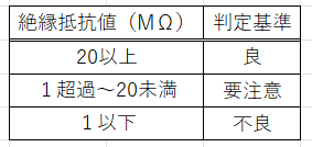 トリップコイルの絶縁抵抗判断目安