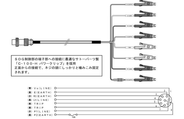 万が一、短絡(地絡)した場合には、補助電源コード(P2)の