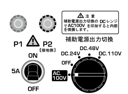 補助電源の用途(AC:500VA、DC:10W以内でご使用すること)