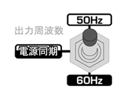 電源周波数と同期した出力周波数と、50Hzおよび60Hzの3種類の中から任意に選択設定