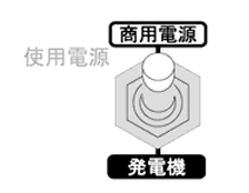 商用電源使用時と発電機使用時で電源の種類を切換える。