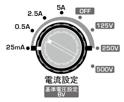 黒文字表示 下段の電流設定レンジ切換スイッチにより