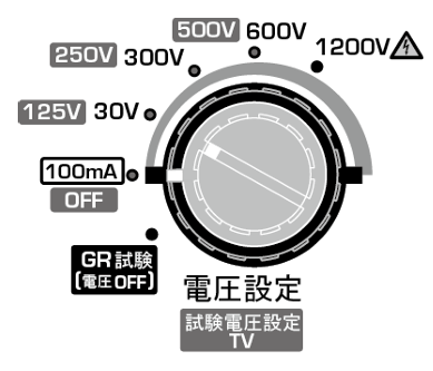 電圧要素を必要としないGR試験時には、電圧設定レンジ切換スイッチを