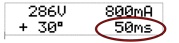 慣性モードにて試験中、カウンタは“50ms”表示となる。