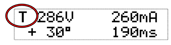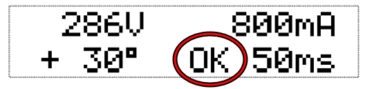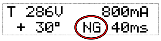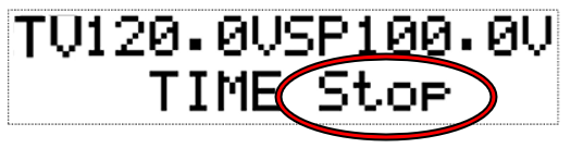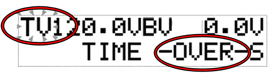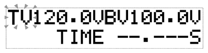 試験電圧TV(TEST VOLTAGE:スタート中)側の電圧出力を継続し “TV”マークが点滅する。