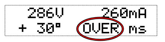 動作時間試験時に99.999S経過してもトリップが検出されない場 合は、カウンタが“OVER”表示となる。