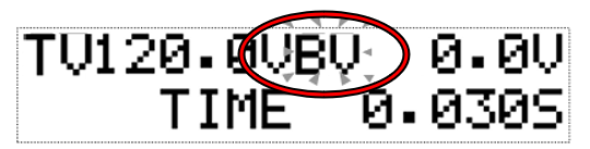 試験電圧設定(TV)の「V」および基準電圧設定(BV)の「V」が点滅する。