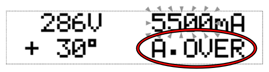 ② 5250mA以上の出力電流を検出した時に電流値が点滅(過電流警告)