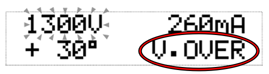 ① 1250V以上の出力電圧を検出した時に電圧値が点滅(過電圧警告)