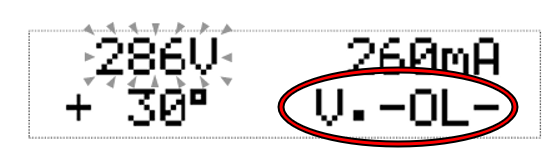 ③ 出力電圧が短絡状態の時に電圧値とV表示が点滅(電圧過負荷警告)