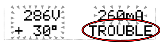 [TROUBLE]:試験器に異常が発生している、または内部温度が80℃ 以上となっている。