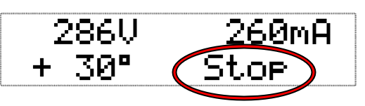 試験出力中に何れかのスイッチを切換えた場合、“Stop”を表示して出力を遮断する。