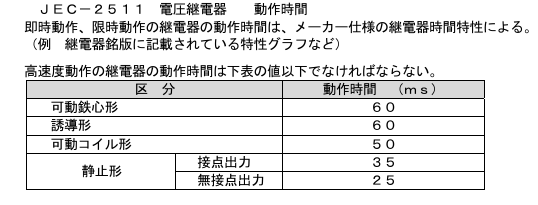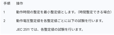 ※JEC-2511では試験電圧値は動作整定値に対して70%