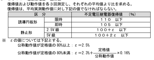 不足電圧継電器の復帰値試験