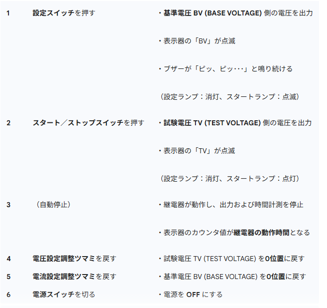 不足電圧継電器の動作時間試験