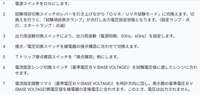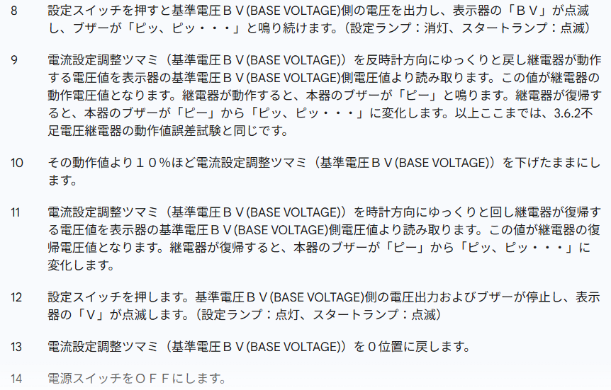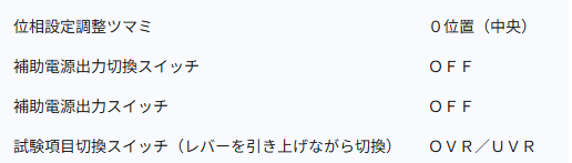 不足電圧継電器の動作値誤差試験