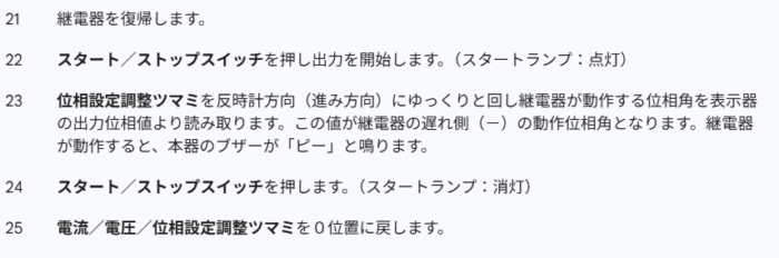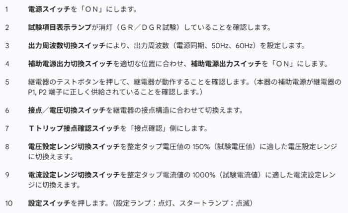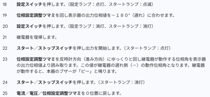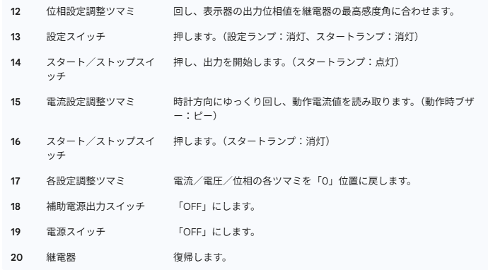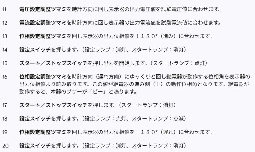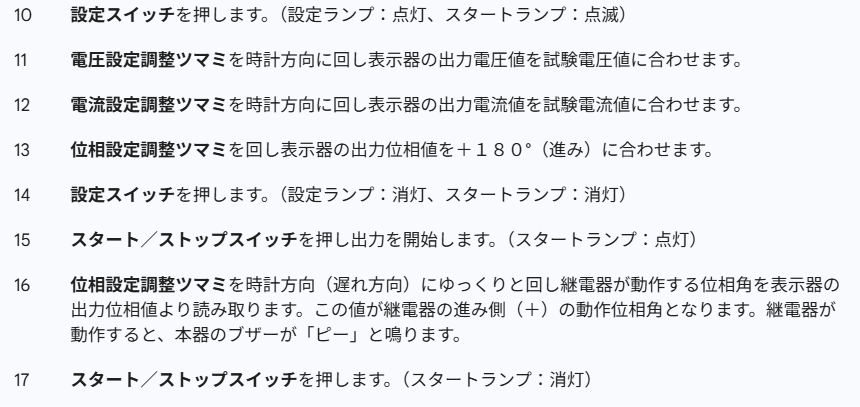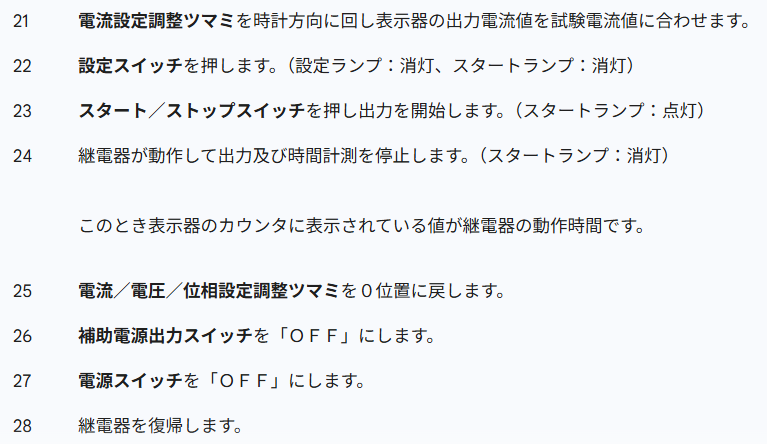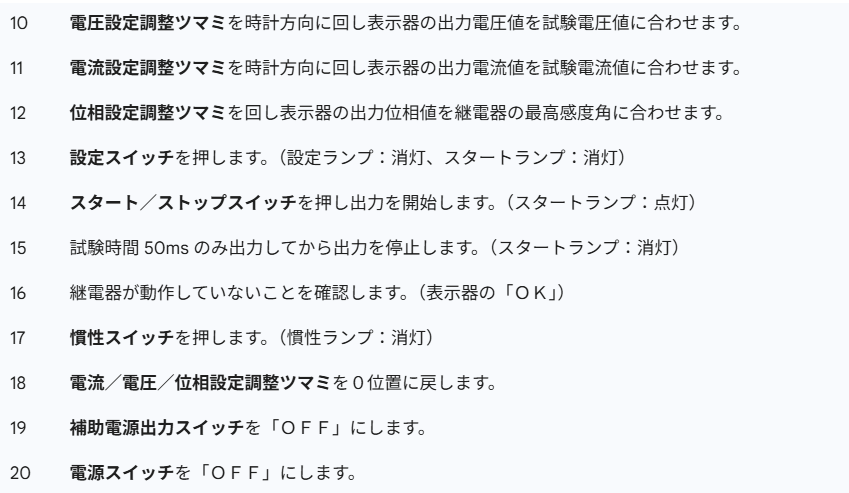 それぞれ電圧と同時に急激に通電して,継電器が動作する時間を測定する。