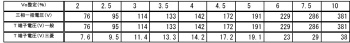 パーセント整定 Vo整定値(%)に対する電圧換算値 (参考)