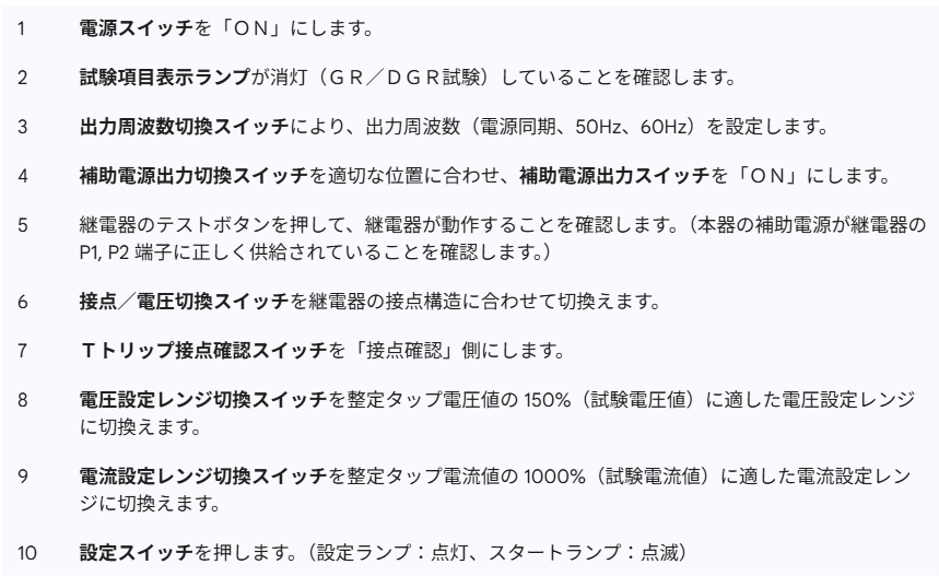 継電器の整定電流値及び整定電圧値を最小とし,整定電圧値の150%の電圧を加え