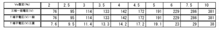 パーセント整定 Vo整定値(%)に対する電圧換算値 (参考)
