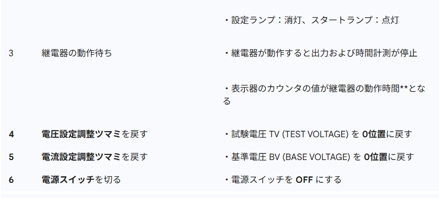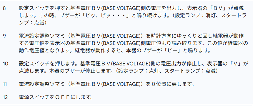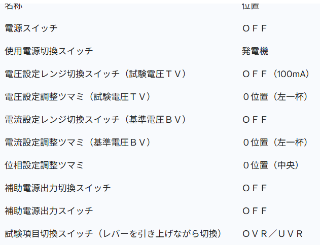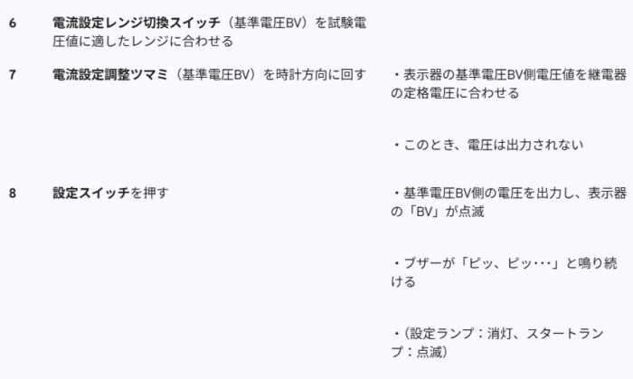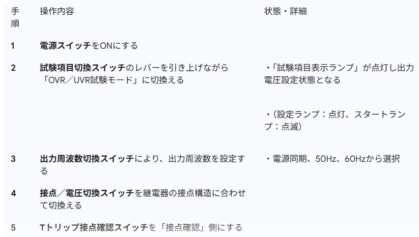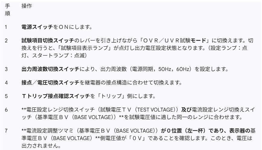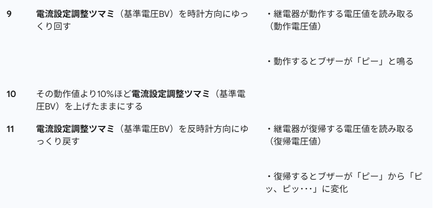 ●動作電圧整定値を各整定値ごとに以下の試験を行う。