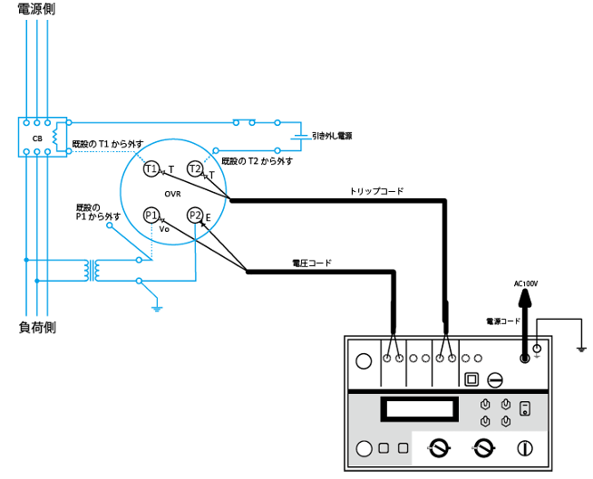 過電圧継電器の単体試験を終了する場合は、試験のために外した