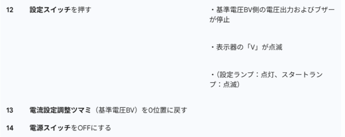 ③ 出力電圧が短絡状態の時に電圧値とV表示が点滅(電圧過負荷警告)